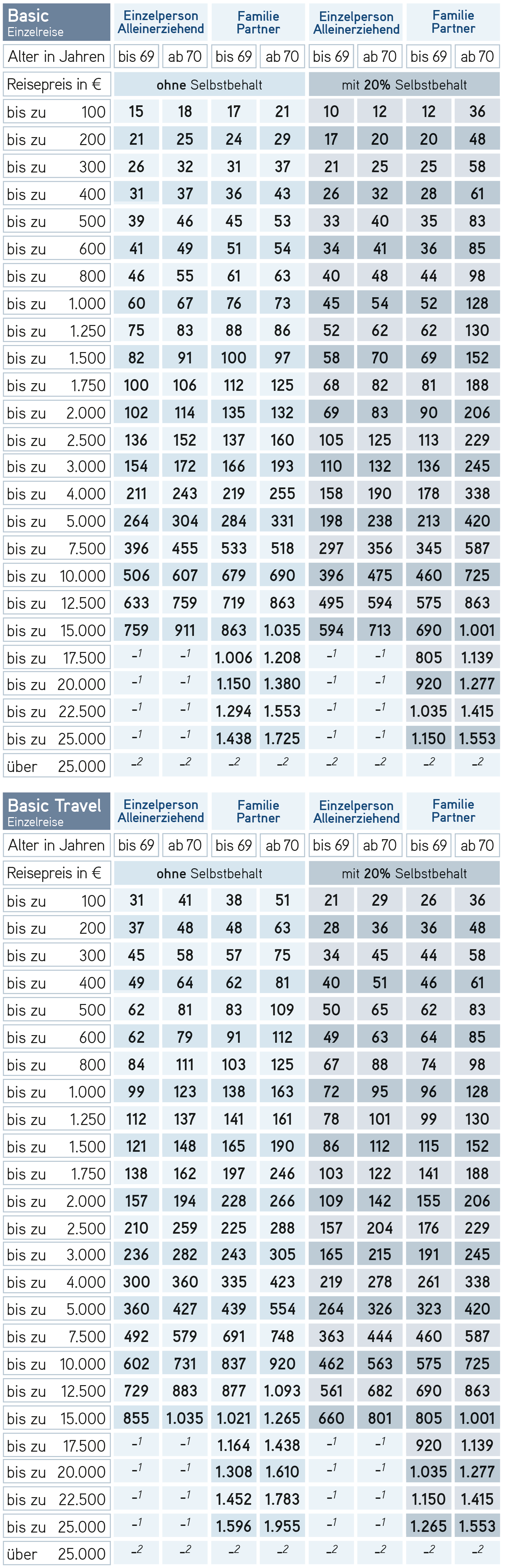 Basic-Tarife für Reisen mit einer Dauer bis max. 56 Tage je Reise.
